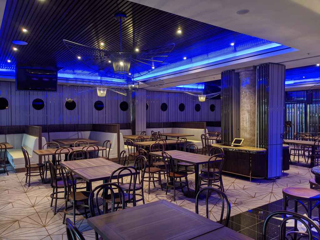 To achieve quality sound throughout the space, the installation team equipped the restaurant with JBL Control 47LP low-profile ceiling speakers and Control 40CS/T in-ceiling subwoofers for wide and consistent coverage throughout the venue while using minimal space.