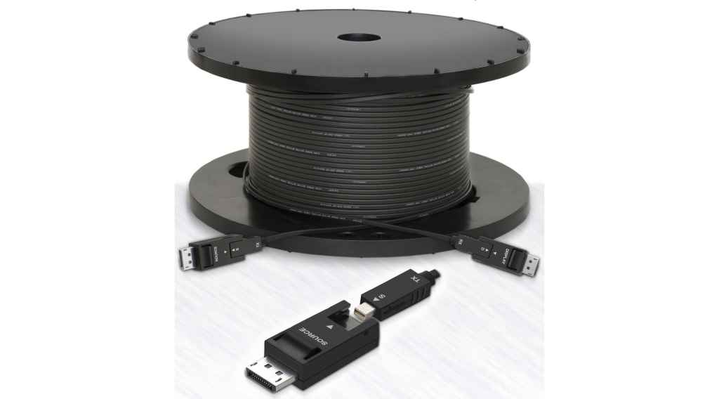 The cables extend DisplayPort 1.4 signals with aggregate data rates up to 32.4 Gbps and are HDCP 1.4 / 2.2 compliant. They support resolutions of up to 8K / 30Hz (4:4:4) for cable lengths of up to 50m and 4K / 60Hz (4:4:4) for cables of up to 100m.