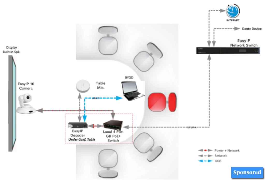 Cost-efficient AV-over-IP solution that people can collaborate with others using cloud-based UC applications through their own devices.