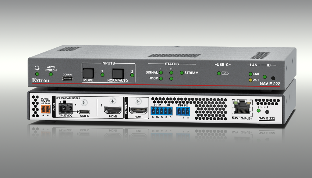 Extron has announced the NAV E 222 USB-C and HDMI switching encoder is now shipping. Adding USB-C input capability and input switching to the NAV platform, this encoder provides AV system designers with options to create streaming systems.
